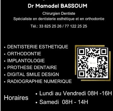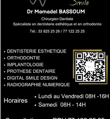 Votre santé bucco-dentaire est notre priorité à Dakar. Nous sommes déterminés à vous offrir les meilleurs soins pour garantir non seulement un sourire radieux, mais aussi une santé optimale. Que ce soit pour des consultations régulières, des soins préventifs ou des traitements spécialisés, notre équipe de professionnels expérimentés est là pour vous accompagner. N'hésitez pas à prendre rendez-vous pour découvrir nos services.